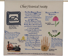 Melanie Pratt’s embroidery tour-de-force for the Society uses images of artifacts in the Society’s collection to hint at Ohio’s rich and varied history.