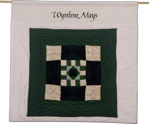 Wyrelene Mays’ page is a history in fabric--a quilt pattern that retells the life of